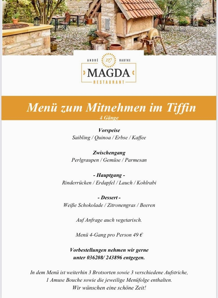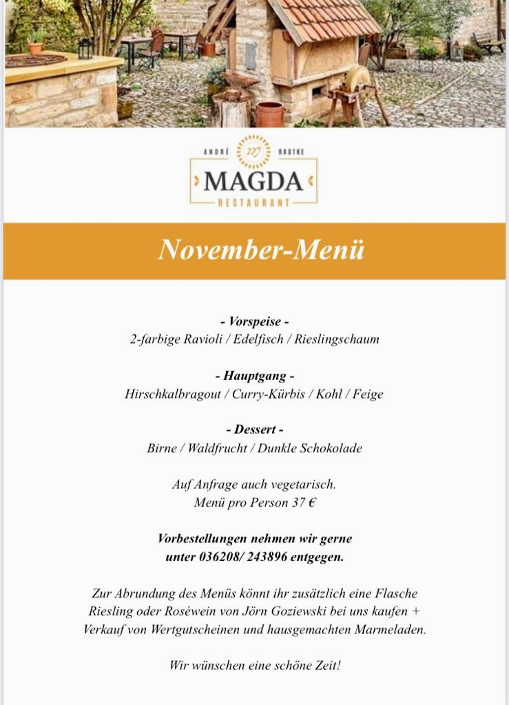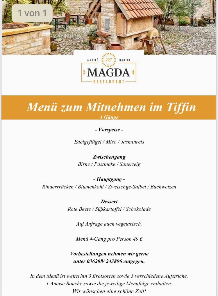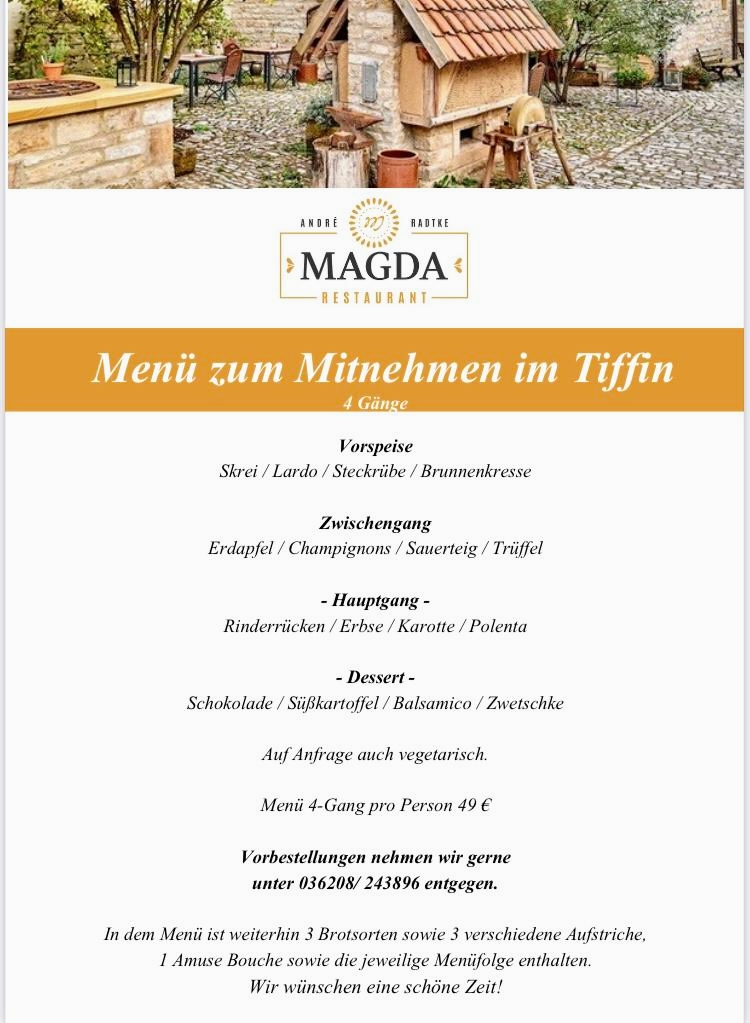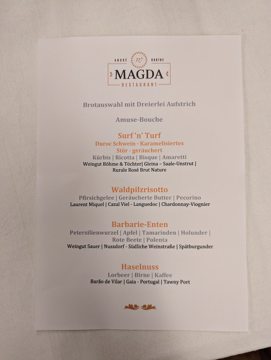 In conclusion, the menu at Magdalenengut - Restaurant Magda presents a thoughtful and creative approach to modern cuisine, balancing refined techniques with fresh, locally inspired ingredients. The dishes stand out not only for their presentation but also for their originality, with highlights such as the delicately crafted Sushi Vom Lauch, which reimagines traditional sushi through a vegetable-forward lens, and the vibrant Karottentartar, offering a surprising depth of flavor and texture. Each plate reflects a clear attention to detail and a commitment to innovation, making the overall dining experience both memorable and distinctive. The menu feels cohesive yet inventive, appealing to diners looking for something beyond the ordinary while still maintaining a sense of comfort and familiarity.